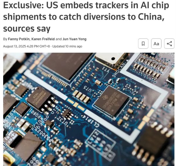 按照路透社独家爆料,美国秘密在人工智能相关芯片中设置追踪器,以发现“芯片被转运至中国的情况”。