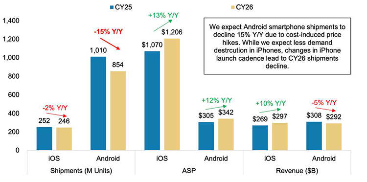 受此影响,摩根士丹利团队对2026年手机出货量表示悲观,将全市场出货量下调至同比下降13%,安卓阵营整体降幅达到15%,而采用联发科SoC的手机整体出货量更下调至同比下降20%。然而,4nm减产却对生产商没有太大影响,台积电腾出的产能很快就被其他先进制程的需求填满。